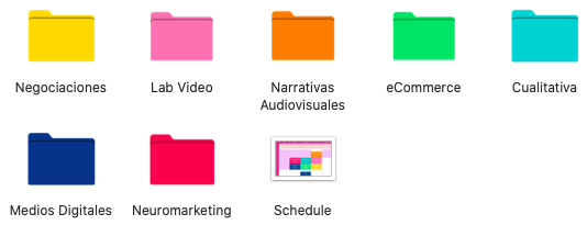 So, back to folders, mine look something like this COLLEGE >, 1º, 2º, 3º, ...and then each folder has it's subjects on the exact color they appear on my schedule. I bet there is about a hundred different ways to do this, and I'll teach you one for Mac computers that works perfectly without needing design programs, all you'll need is: